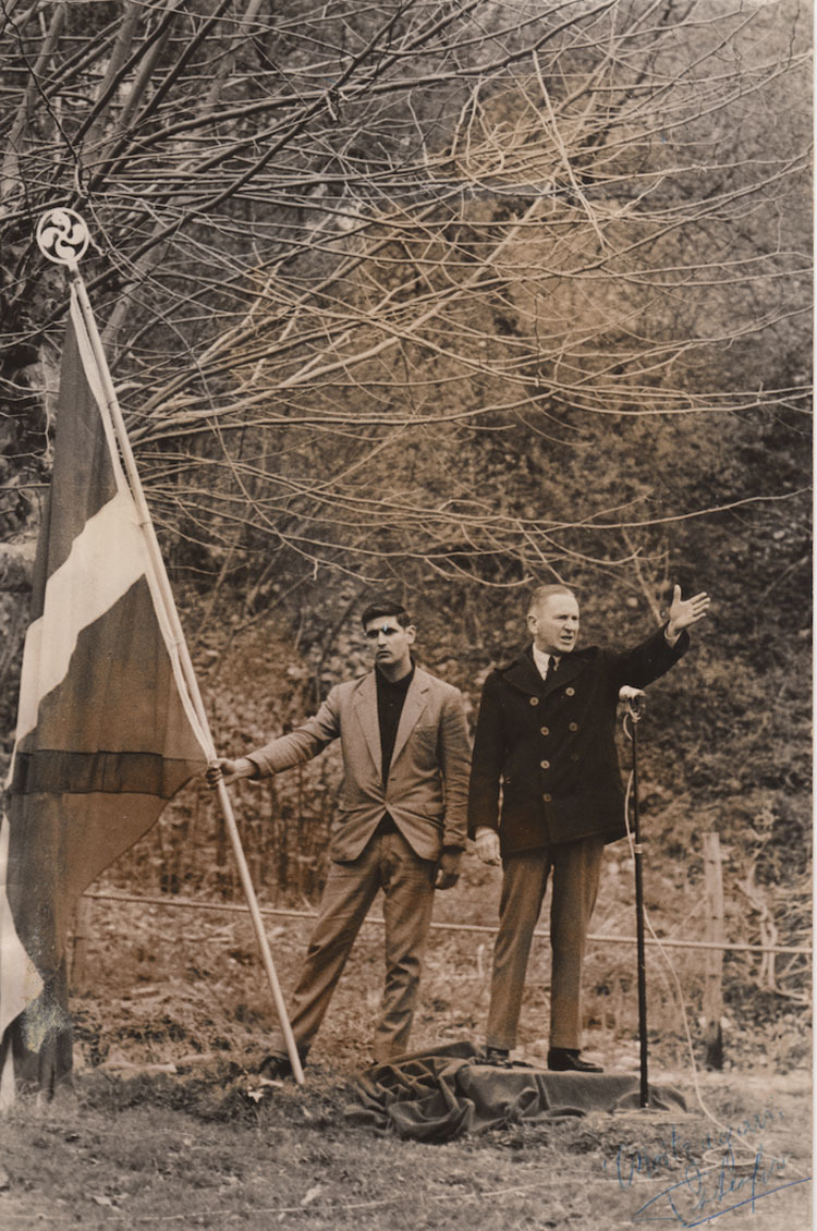 Jose Migel Beñaran «Argala»-rekin batera. Lerro hauen gainean, Itsasun, Enbatak 1963an antolatutako Aberri Egunean. Ondoan, Ximun Haran ikurrinarekin.