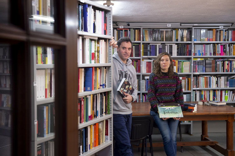 Garazi Arrula eta Jon Jimenez Txalapartako editoreak, Tafallan. Argazkia: Iñigo Uriz | FOKU