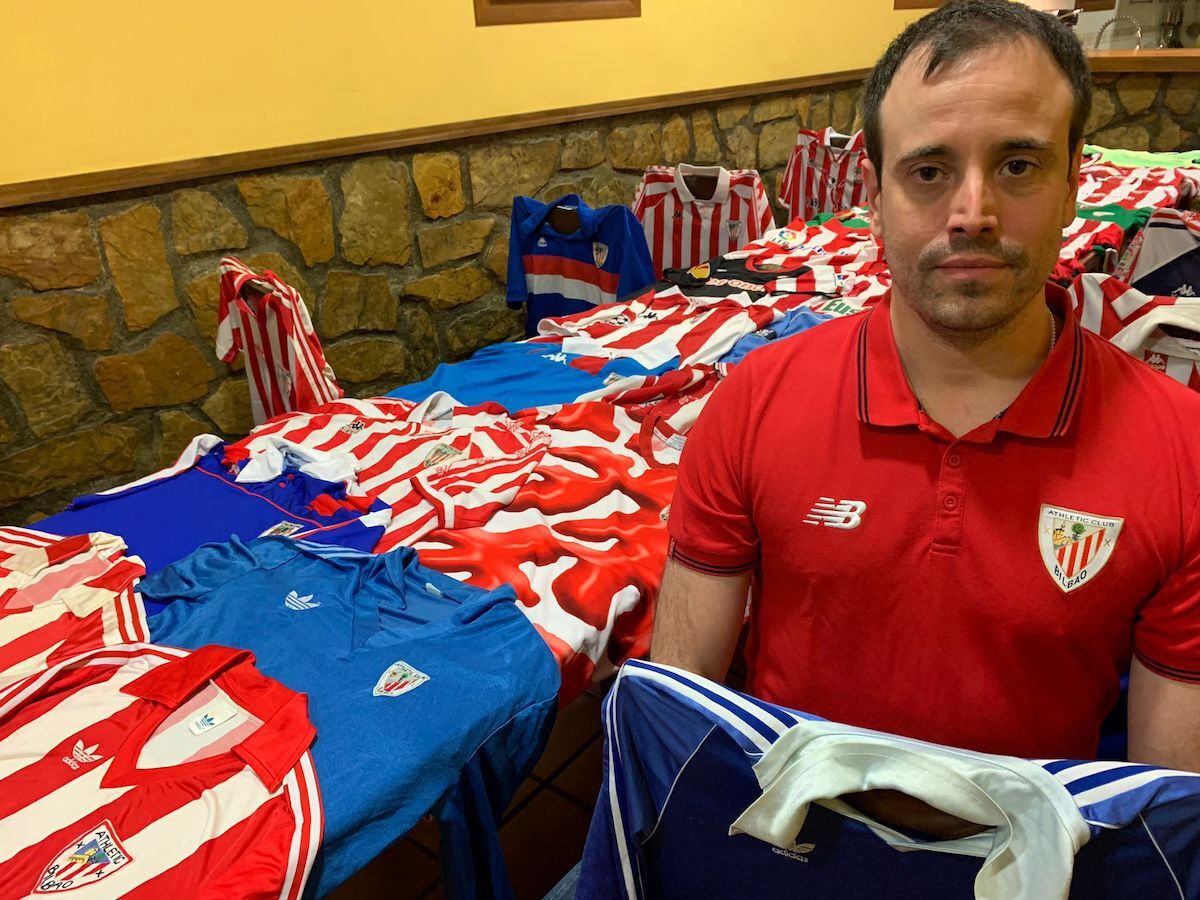 Una de sus principales reliquias es «una de esas rarezas idiotas de los noventa, ya la camiseta suplente azul que se utilizó en la Champions de 1998 contra la Juventus y el Rosenborg, que es preciosa, no se vendió en la tienda». Él consiguió la de Josu Urrutia con el seis a la espalda. No es fetichista a la hora de buscar las camisetas de un determinado jugador, pero reconoce que «tener únicamente camisetas de Aduriz, Etxeberria o Guerrero me parece que está muy bien, pero del día del 1 a 7 en Lieja tengo la de Murillo, un jugador al que le tocó hacer después un trabajo muy ingrato, que le cayeron muchos palos, pero que si no es por esos perfiles a saber dónde estábamos. Es el Athletic, de la Champions de 1998, tengo la de Alkiza y la de César Caneda, un titularísimo y un chaval que empezaba y sigue jugando con 43 años. Es lo que me va surgiendo, no busco de un jugador concreto, este año tengo la de Vesga. Ahora bien, por ejemplo, tener la camiseta de Urrutia, un jugador que luego ha sido presidente, en un partido emblemático es algo que pone».