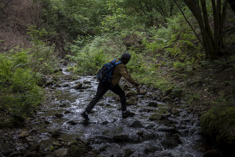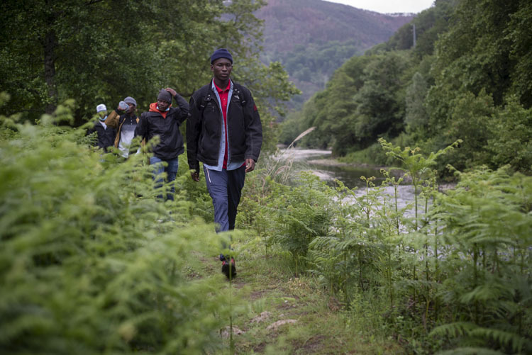 (Goian, Ibrahima, Oumar, Aden eta Abdoulaye Bidasoa ibaiaren bazterretik oinez)