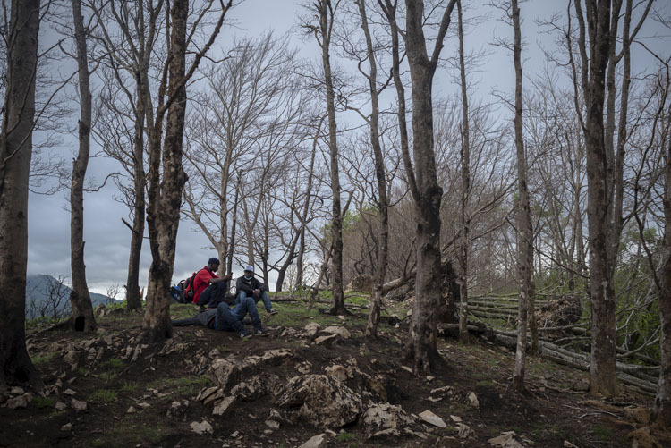 (Goian, Ibrahima, Abdoulaye eta Oumar atseden hartzen, iratze artean bi ordu baino gehiago ibili ondoren)