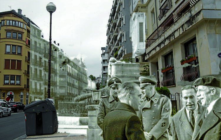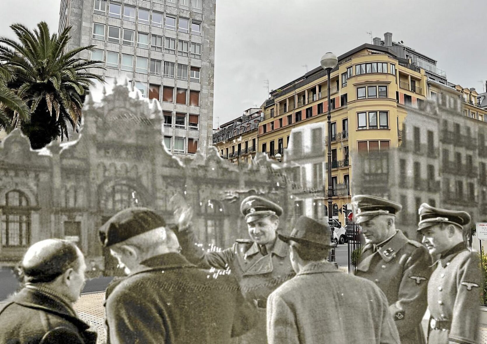 Tras un paseo por la calle Zubieta, foto en mano, la esquina con la calle Blas de Lezo reveló el lugar donde se había encontrado la Alhóndiga. Ahí se erigió, en 1950, el primer ‘rascacielos’ de la capital guipuzcoana. En los últimos cuatro de los doce pisos albergó el Hotel Orly. Con este edificio ‘gigante’ crecieron edificios vecinos mientras otros desaparecieron como ocurrió con el Hotel Continental. En 1972 cerró sus puertas para siempre. Cuatro décadas antes, su entrada principal se encontraba a la altura de la Alhóndiga. En 1942, alemanes como el trío SS se alojaban en el Continental cuando sus viajes en coche o tren recomendaban parar en Donostia antes de seguir el camino hacia París o Madrid.