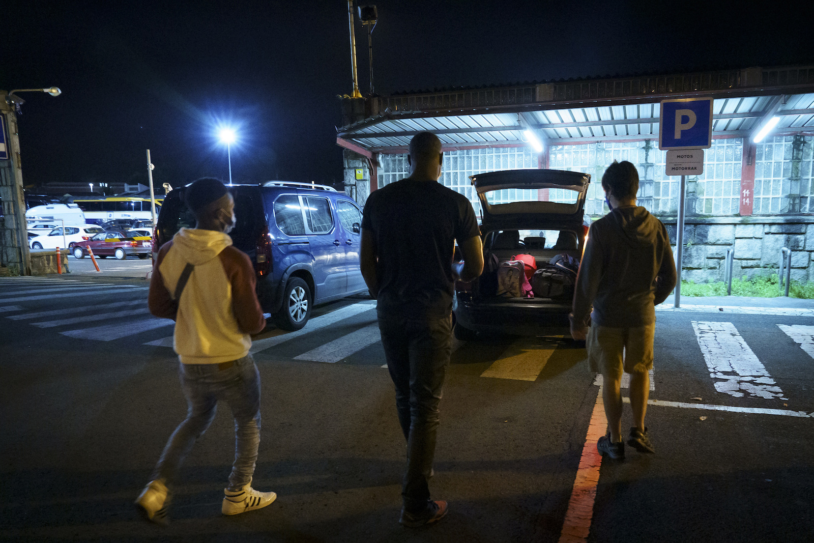 Gaueko 23.00ak dira, Bilboko autobusa heldu da eta inork ez du laguntzarik behar. Aldiriko trenean bai. Gazte maliar bat iritsi da, muga gauez igarotzea du buruan. Madrildik dator eta Parisera heldu behar du ahalik lasterren. Eguneko azken autobusean Boli Kostako lau gazte gehiago iritsi dira. Gurutze Gorriaren aterpetxera joateko konbentzitu dituzte.