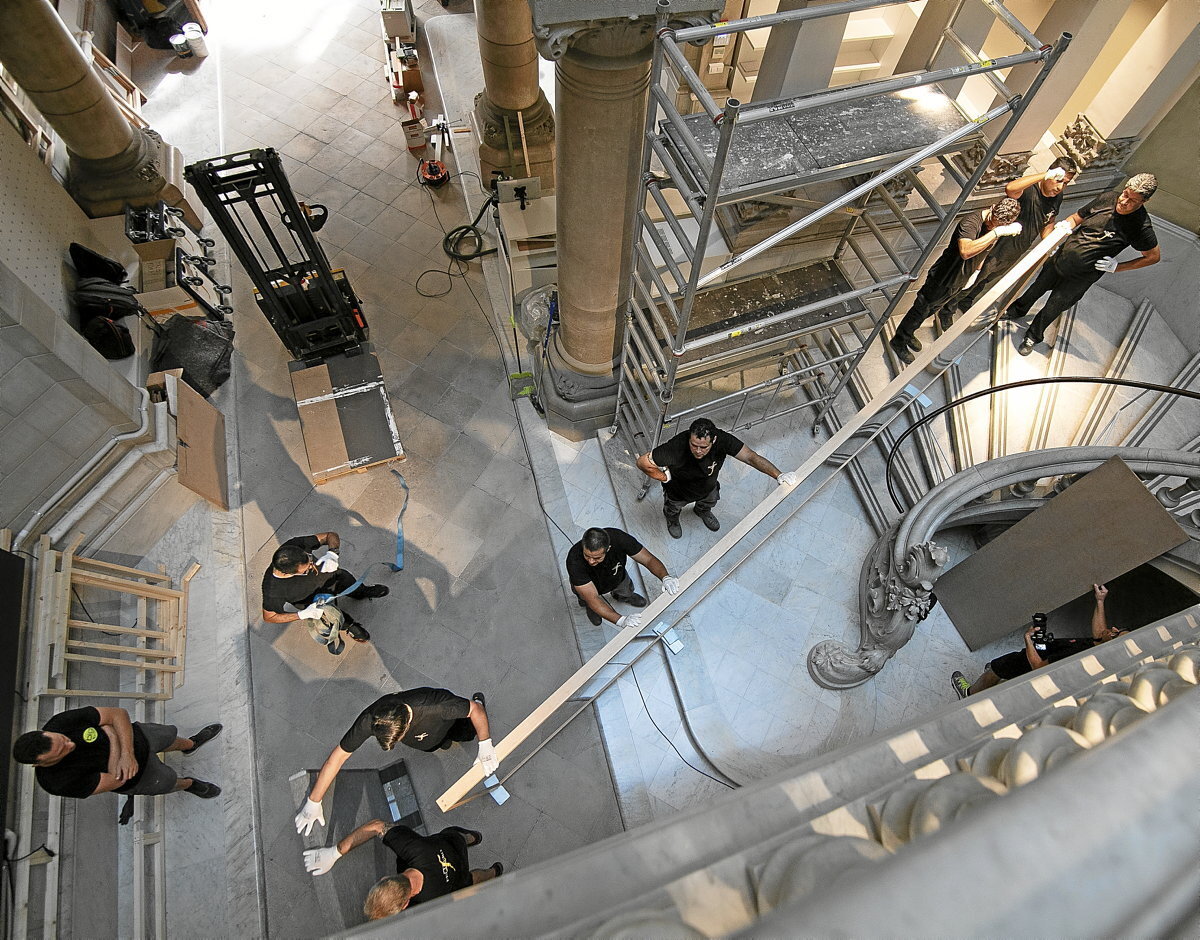 La fotografía, de casi nueve metros y donde se lee ‘Pederastia’, cuesta subirla a su emplazamiento. Ha sido colocada en una de las salas del Museu de l'Art Prohibit. Situado en la Casa Garriga Nogués, un edificio modernista muy cercano al Passeig de Gràcia de Barcelona, este museo, que abrió sus puertas a finales de octubre pasado, es una rareza, ya que exhibe parte de la colección de piezas censuradas, agredidas, denunciadas y prohibidas a lo largo del mundo adquiridas por el periodista Tatxo Benet. Hay piezas de artistas como Warhol, Picasso, Goya, Ai Wei Wei, Banksy, Gustav Klimt, Miquel Barceló o Mapplethorpe. Por cierto, que a la colección pertenecen también las ‘Crónicas del País Vasco, 1987-2001’ y la fotografía de la radiografía del cráneo de Miguel Ángel Blanco, del fotógrafo navarro Clemente Bernad, aunque todavía no está expuesta. A la vista del público sí que están dos obras de Abel Azcona: ‘Proyecto Amén, 2015-2021’ y ‘La Pederastia, 2015-2021’.