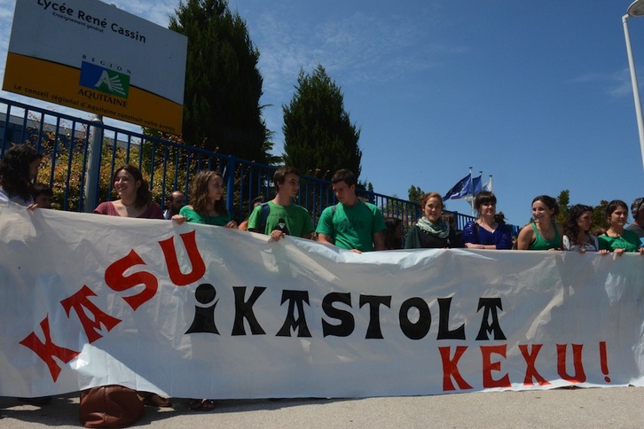 Egoera halakoa izanik, Seaskak deituta elkarretaratzea egin dute 12.30ean Baionako Cassin azterketa zentroaren aurrean.