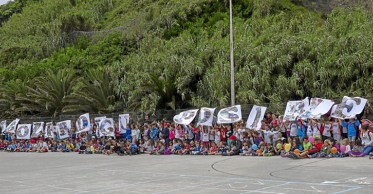 Futbol eta saskibaloi pista, esaterako, Oka Jolas Erraldoiak hartu zuen. Etxeko erara, lurrean klarionaz marraztutako laukiak izan zituzten jolasgune ekimenean parte hartu zuten haurrek, horietatik asko Donostiako udalekuetan zebiltzanak; motxila urdin-hori eta gorriez josi zituzten jolasgunearen bazterrak. «Udalekuetan dabiltzanek aurrez pasa digute abisua eta, aurreikuspenen arabera, bagenekien gaur hemen gutxienez 160 haur inguru izango genituela, baina uste dut motz geratu garela...» azaldu zuen Julenek. Bera izan zen atzo «Edozer dugu posible» egunean lanean aritu ziren 500 boluntarioetako bat. Oka Jolasean, taldeka jarri, fitxa bana eman eta, erortzen ziren laukiaren arabera, jolas edo probak burutu behar izan zituzten haurrek. «Baina helburua ez da irabaztea; asmoa denak jolasa amaitzea da, eta batez ere ondo pasatzea», nabarmendu zuen. Talde-lana sustatu eta jolasa joko bilaka zedila ekiditea, alegia. Eta lortu zuten, eguneko irudi ederrenetako batekin gainera: jolasaren amaieran, talde bakoitzari hizki bat zeraman kartela eman zioten eta denon artean osatu zuten aurtengo lema, «Edozer dugu posible». Xehetasun modura, aipatzekoa da hizki bakoitza aurreko jai herrikoietako irudiekin josi zutela, hamaika urte hauetan posible egin dutena etorkizunean ere posible izan dadin lanean jarraitzeko duten asmoaren erakusle. Eta haurrak izan zituzten konplize: «Edozer dugu posible! Edozer dugu posible!» oihukatuz goratu zituzten hizkiak eta txalo zaparradak iragarri zuen ekimenaren amaiera. 12.15 ziren ordurako eta, haurrek ez bazekiten ere, orduantxe «sorpresaz» azaldu behar zuen Porrotx Donostiarako bidean galdua zebilen nonbait. Haurrek horren berri ez zutenez penatu behintzat ez ziren egin eta aho zapore onez amaitu zen jolasa.