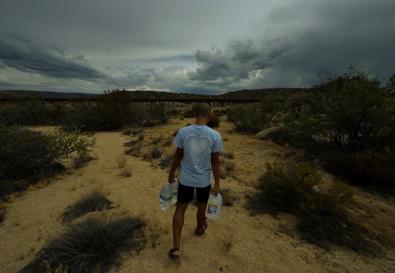 Un voluntario del grupo Border Angels, con botellas de agua para audar a los inmigrantes que cruzan la frontera entre México y EEUU.