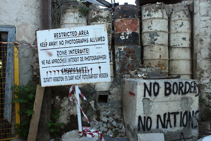 Pero si hay una ciudad realmente dividida por un muro, esa es Nicosia. Tras el golpe de Estado de los coroneles en Grecia y la posterior invasión turca de Chipre en julio de 1974, la población griega del norte de la isla fue expulsada al sur. La ONU estableció una zona desmilitarizada de este a oeste, que en el caso de la capital supuso la construcción de muros de separación de ambas zonas (aunque ambas comunidades ya llevaban algunos años con alambradas de espino para separar diferentes barrios) y un único paso en la calle Ledra. Desde el fallido proceso de reunificación impulsado por Kofi Annan antes de la entrada de Chipre en la Unión Europea en 2004, se han ido abriendo diversos pasos ‘fronterizos’ (la República Turca de Chipre del Norte se considera un estado independiente desde su proclamación en 1983, solo reconocida por Turquía). Desde la apertura total de la calle Ledra en 2008, se han llevado a cabo varios proyectos artísticos y de protesta en esta zona, como ‘Occupy Buffer Zone’ en 2011 y 2012, o la cadena humana desarrollada el pasado 2 de septiembre entre la parte griega y la turca, pasando por el puesto de control de la ONU, para pedir la reunificación de Chipre.