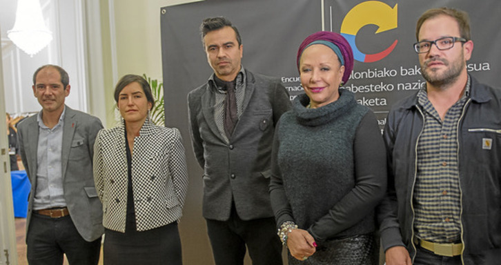 «Hace tres años en este mismo lugar celebramos una conferencia internacional que abrió las puertas de la paz en nuestro país. Esta antigua residencia de Franco se convierte día a día en referente de la paz y hoy lo hace un poco más. Me alegro de que estéis quienes estáis hoy aquí, de manera inclusiva, un concepto fundamental», dijo Izagirre. Bajo esa premisa, Martha Cecilia Maya, asesora de la oficina del Alto Comisionado para la Paz y miembro del equipo negociador del Gobierno en La Habana Sergio Jaramillo; la exsenadora y portavoz de Colombianos y Colombianas por la Paz Piedad Córdoba; y el analista Oscar Guardiola ofrecieron diferentes puntos de vista sobre las conversaciones y los retos que van superando, más allá de la suspensión temporal de los diálogos que ha marcado estos días.