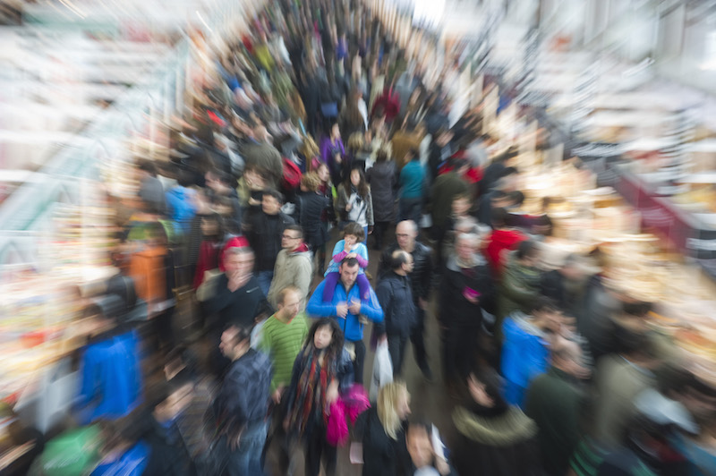 Plateruena kafe antzokiaren ibilbidea Azokarekin bat doala esan daiteke. Irudian, Azoka egunetan biltzen den jendetza. (Jon HERNAEZ)
