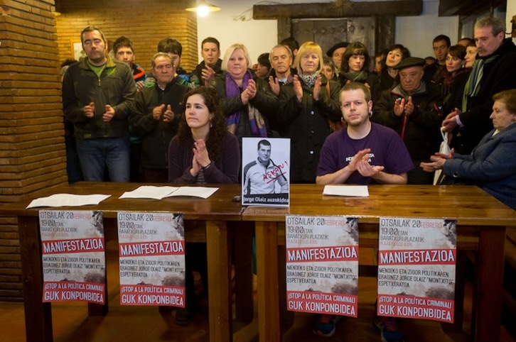 Los vecinos de Alde Zaharra de Iruñea han recordado que Olaiz salió de prisión en mayo tras cumplir una condena de trece años y que ahora «la aparición misteriosa de un supuesto testigo» sobre hechos sucedidos hace catorce años le ha vuelto a llevar a la cárcel. Todo ello, a pesar de que Olaiz se ha presentado voluntariamente en dos ocasiones en la Audiencia Nacional española para testificar.