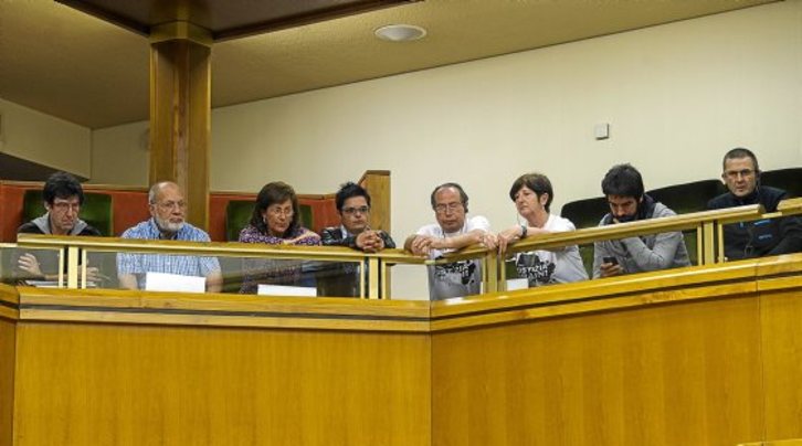 Manu Cabacas y Fina Liceranzu, padres del fallecido Iñigo; Xabier Irazusta, viudo de Rosa Zarra; Joseba Nafarrate, cuyo hijo Xuban fue gravemente herido en una carga de la Ertzaintza; y Mikel Quintela, que perdió un ojo por un pelotazo, estuvieron ayer en el Pleno acompañados de otros familiares y miembros de Egiari Zor. Tras el debate, en el hall de la Cámara se produjo un tenso encuentro con Joseba Egibar que el parlamentario jeltzale y miembro del consejo de Administración de EiTB intentó impedir, sin conseguirlo, que fuera grabado por las cámaras de esta televisión.