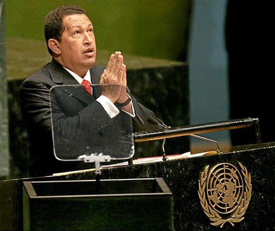 Denboran gertuagokoak dira (2006ko irailaren 20koak) Hugo Chavezek atriletik AEBetako presidente George W. Bushi esandakoak. Batzar Nagusiaren txalo zaparrada jaso eta AEBetako ordezkariak sutu zituen analogia bat eginez. «Hemen dago deabrua. Atzo hona etorri zen deabrua. Leku honetan sufre usaina dago oraindik», esaldi gogoangarria utzi zuen. AEBen asmo hegemonikoek gizateriaren biziraupena arriskuan jartzen dutela eta mehatxu inperialista horiei aurre egin behar zaiela sutsuki defendatu zuen. Haren lagun eta jarraitzaile Ekuadorko presidente Rafael Correa harago joan zen, Bushi deabru deitzea deabruari irain egitea zela esanez, deabrua maltzurra izan arren gutxienez azkarra delako.