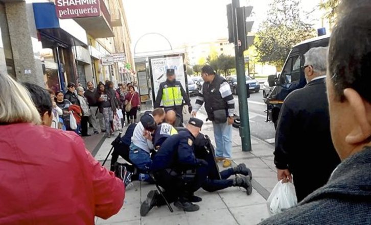 Explican que dos agentes de paisano dieron el alto a Ndiaye, que iba en moto y que preguntó por qué lo paraban. «El policía insistía en que se identificase y el chico respondía que por qué lo tenía que hacer», relata uno de los testigo, quien añade que la tensión creció hasta llegar a las manos. Confirma que Ndiaye se resistió fuertemente y que los tres acabaron en el suelo. Pero la versión cambia al llegar al final de la escena en Marcelo Zelaieta.