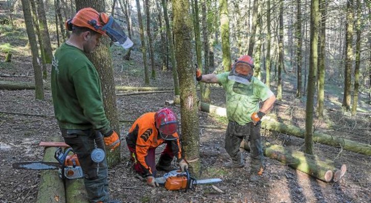 Hamar ikasle eta bi irakasle dabiltza Usurbilgo Irisasiko parajean pinu eta izeiak mozten, Motozerralari Txartel Europarra lortzeko xedez. Orain arte ondokoengandik ikasi duten basoko langileek egiteko modu seguru eta eraginkorragoak daudela ikusi dute.