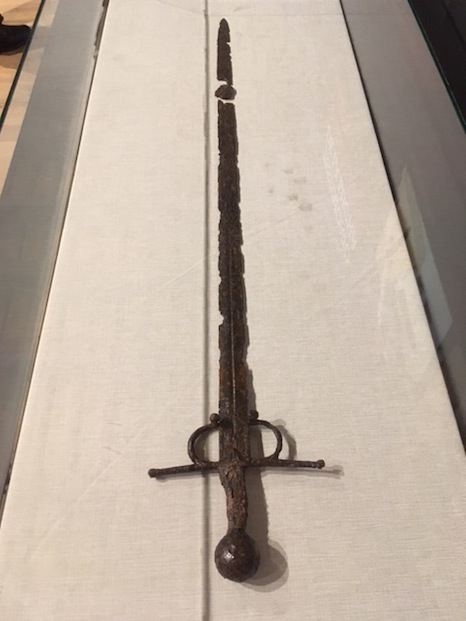 Otra de las piezas más destacadas es la espada localizada en las excavaciones entre los lienzos medievales y las reformas realizadas en el castillo en el siglo XVI. Se trata de una espada típica de esa centuria, por lo que probablemente pudo ser utilizada en julio 1522, cuando 200 navarros se enfrentaban a las tropas españolas de Carlos V que querían reconquistar las fortaleza en poder de los fieles a Enrique II de Albret.