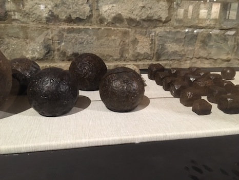Más piezas encontradas y que recuerdan la resistencia de 1522 tienen que ver con los proyectiles de artillería localizados. Están realizados en hierro macizo y tienen un peso cercano a los 15 kilos. Algunos aparecieron incrustados en los muros del castillo, un elocuente recuerdo del castigo artillero que sufrieron los defensores de la independencia de Nafarroa ante las tropas españolas.