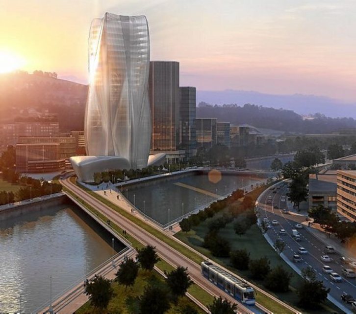 Este rascacielos, proyectado por la arquitecta anglo-iraquí fallecida en marzo, estaba llamado a ser uno de los edificios emblemáticos de la futura isla. Ubicado en uno de los terrenos más próximos a la apertura del actual canal de Deustua, Kutxabank ha pagado a Visesa, sociedad pública dependiente del Ejecutivo de Lakua, 21 millones de euros por la parcela, donde se pueden edificar 25.000 metros cuadrados en altura y 11.000 bajo rasante.