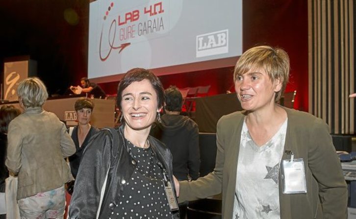 En el Congreso Nacional de Barakaldo Rafa Díez dejó en manos de Ainhoa Etxaide la Secretaría General del sindicato LAB. Ayer, nueve años después, ella cedió el testigo a Garbiñe Aranburu, única candidata, que obtuvo el 91,5% de los votos en el IX Congreso Nacional celebrado en el Palacio de Congresos Europa de Gasteiz con el lema “LAB 4.0 Gure garaia”.