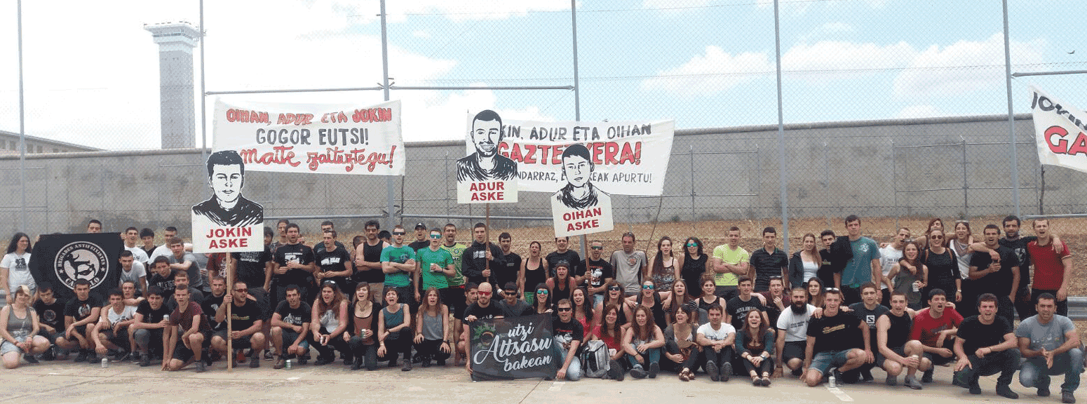 Dantza herrikoiak, elkarretaratzea eta espetxearen inguruan martxa aldarrikatzaile bat egin dituzte. Salaketa pankartak eta hiru gazteen aurpegiak zeramatzaten panelak erakutsi dituzte. «Sistemaren sostengatzaileek beldurrez eta kolpez geldituko gaituztela uste dute, baina oker daude», adierazi dute.