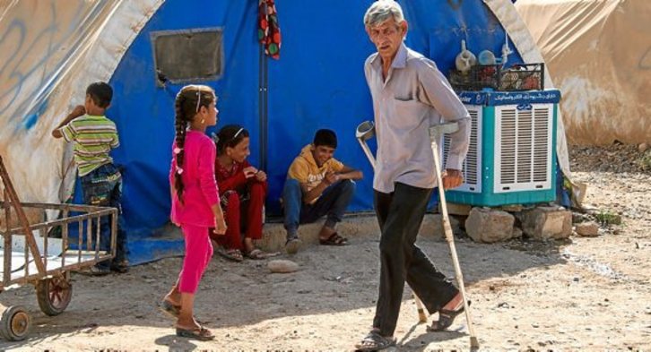 Errefuxiatu batzuek lana eskatzen diete gobernuz kanpoko erakundekoei. Batzuek ezin dute etxera itzuli, arabiarrak izanda, beren eremuetan pexmerga indar kurduak baitaude orain. Hobe bertan geratzea!