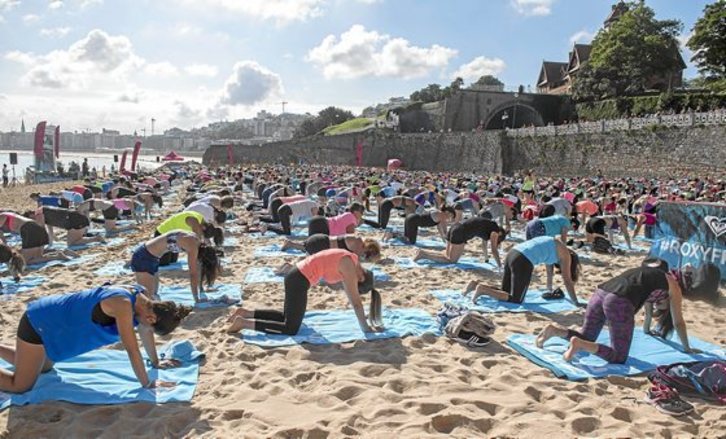 Roxy Fitness ekimena bira bat egiten ari da munduan barna Roxy emakumeentzako kirol arropa markaren eskutik. Biarritzen hasi zen uztailaren 2an eta atzo Donostian izan zen. «Ezin gara eserita egon, mugitu egin behar dugu, egiten duguna gara. Korrika egiten dugu, arraun egiten dugu, izerditu egiten dugu, gure mugak bultzatzen ditugu. Geure erara egiten dugu, beraz, goazen, gure mugimenduarekin bat egin ezazu!», dio kanpainaren lema inspiratzaileak.