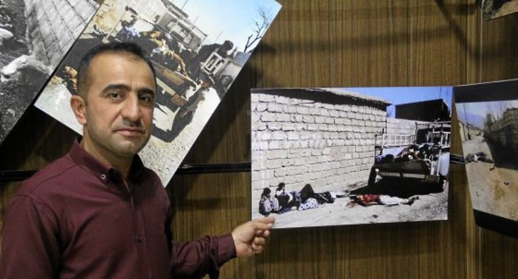 Atendiendo a los visitantes está Akram Mohammad, de 40 años y que desde hace ocho trabaja en el memorial. «Perdí a mis padres y a tres hermanos en el ataque químico», recuerda Akram, junto a una fotografía de la exposición. En ella se observa un camión con varios cadáveres detenido porque el conductor ha desfallecido. Sentados en el suelo y recostados en la pared, hay dos niños rodeados de cuerpos. Uno de ellos abraza el cuerpo de una mujer mientras se tapa el rostro con la otra mano. El otro desencajado, mira hacia ninguna parte. Es Akram.