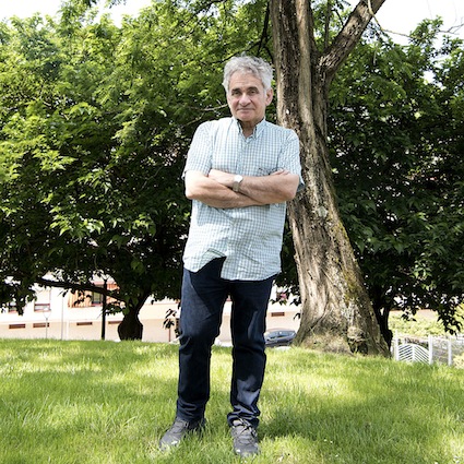 Bernardo Atxaga, asteasuarra izaki, Andoainen egin zituen ikasketak. Irudian, hilerri zaharra zegoen tokian. (Argazkia: Conny BEYREUTHER)