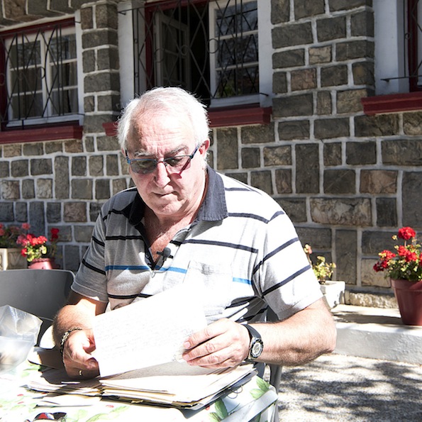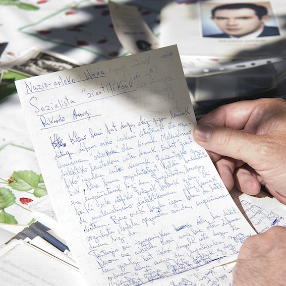 Goiko partean egoten ziren biak. Goiko balkoi txiki horrek [dio etxeko aurrealdera begira] Manuel Lekuonaren gelara ematen zuen eta ondoan Rikardoren gela zegoen. Rikardok bere lanak aurrena idatziz paperean egiten zituen eta gero makinara pasatzen zituen, Olivetti txiki batean. Hori da Manuel Lekuonak idatzi zuena Rikardo hil eta berehala, nola sentitzen zuen edozein ordutan makinaz idazten.