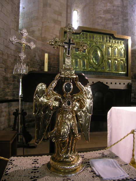Teodosio pasó después a la sierra de Aralar, donde la leyenda sitúa de nuevo la aparición de San Miguel para librarle de un dragón, representativo del mal. Fue en aquel lugar donde se levantó el santuario de San Miguel, en cuyo interior cuelgan las cadenas que Teodosio habría arrastrado durante siete años consecutivos.