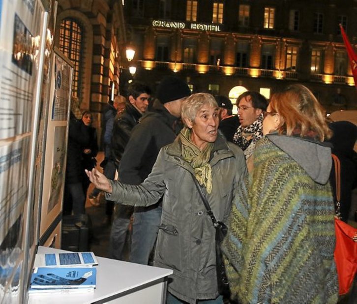 «Tolosak Euskal Herriko bakearen karabanari harrera egiten dio»; horrela zioten atzo Tolosako Capitole plaza nagusian banatu zituzten esku orriek. Modu horretan, arratsaldeko seietan Okzitaniako hiriburuan elkarretaratzean bildu ziren eragileek Euskal Herriko bake prozesuaren eta preso politikoen egoeraren berri eman ahal izan zuten.
