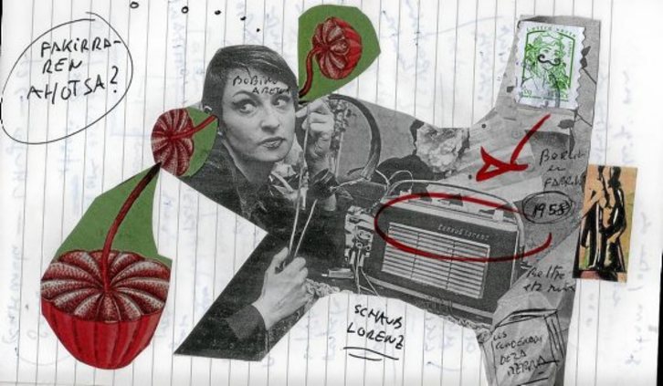 “Izokina berriz? Korrontearen kontra joatea da kontua, ala?”. Supermerkatuko kutxazainak badaki idazlea naizela. Nire ondoren ordaintzea tokatzen zaionaren begirada premiatsuegia ez denean, «Zelan doa inspirazioa?» galdetzen dit, baldin eta lan-txandan sartu berri bada eta oraindik umoretsu. «Liburu berriren bat prestatzen?». Eguraldiaz mintzatzearen pareko axaleko printza aforistiko bat ekartzea dagokit hor, baina tamalez ez naiz Juan Kruz Igerabide. Erreflexuek dakarten lehen pellokeria bota behar, idazlea beti ari dela zerbait idazten, alegia, edo baietz, «liburu batekin borrokan» ari naizela («En la lucha» esan izan diot, euskaraz ez dakienez: berak ring bat irudikatzen du agian, edo Bahia de Cochinos –ez dut uste, gazteegia da–; arraro begiratzen dit). Liburua, objektu bezala, geure lanaren alderdi intzidental, akzidental, erresidual edo halabeharrezkoa baino ez dela esan niezaioke, eta ez litzateke guztiz gezurra. Esan niezaioke istorio bakoitza tantaz tanta iragazten doala –ezti bezala batzuetan, behazun bezala beste batzuetan; estalagmita bezala, gehienetan–. Liburua albo kalte bat baino ez dela, edo, ez hain tragiko, “albo poz” bat. Esan niezaioke liburu berrietan liburu zaharretako destilazio gazi-gozoak geratzen direla, krematorioetan aurreko hildakoen errautsetako zenbait orain erretzera doazen hilotzarekin nahastuko diren ber gisan, nahiz eta hau ez dizuten tanatorioko langileek azaltzen.