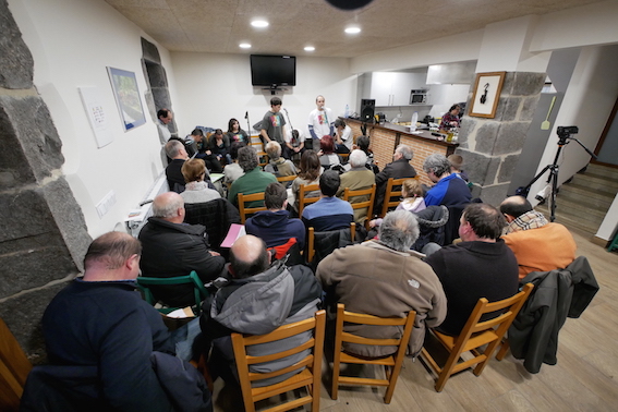 Bestelakoa da giroa elkartean. Epel egiten du hemen eta jendea atze-aurre etengabean dabil, sukaldean lanean dela, aulkiak jartzen dela, soinu ekipoa prestatzen dela. Euskara ezberdinak entzuten dira: Larraun alde honetakoa, Lizarrako bertsolariek ekarri dutena, bisitari gipuzkoar batzuena ere bai… Berrogeita hamar bat lagun bilduko ziren, bakoitza bost euro ordainduta.