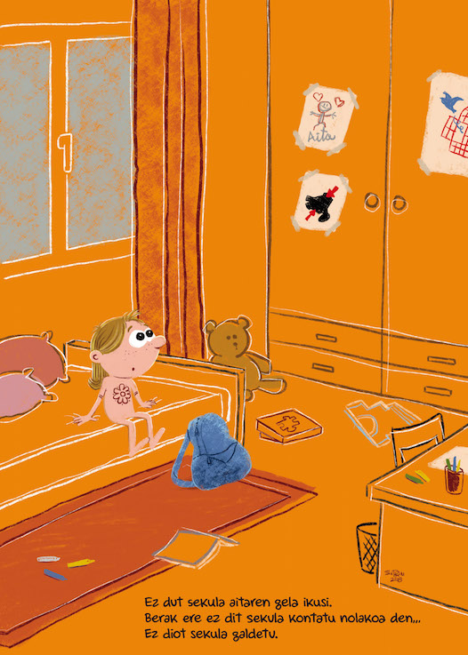 Aitaren bizitokia ezagutzen ez duen bezala, aitak ere ez du alabaren logela ezagutzen.Ez ditu eskolan egin eta paretan jarritako marrazkiak ikusi, ezta Olentzerok ekarritako jostailuak ezagutu ere. Aitak ez dio inoiz bere logelara eraman, ezin du eta.
