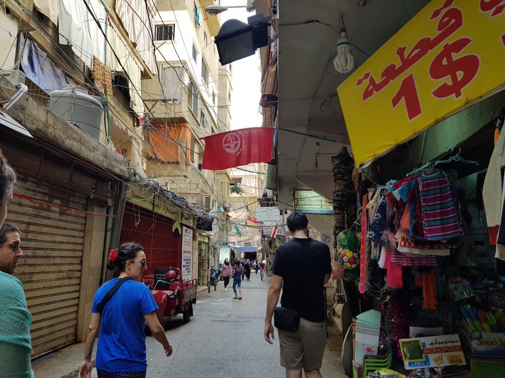 Elkarrizketa honek utzitako sentsazio eta irakaspenak barneratzen ditugun bitartean Shatilara goaz tipi-tapa. Etorbide luze eta zabalak atzean utzi eta kaleak estutzen hasten dira, eta zarata handitzen, iritsi gara Shatilara: kiratsa, bero sapa, zarata, kable mordoak gure buru gainean, ur zikinak bustitako lurra... Baina bada zerbait diferentea, etxera iritsi aurretik, eskinako dendan sartu eta bandera palestinarra erosi dugu, garrantzitsua da brigadako argazkitan azaltzea.