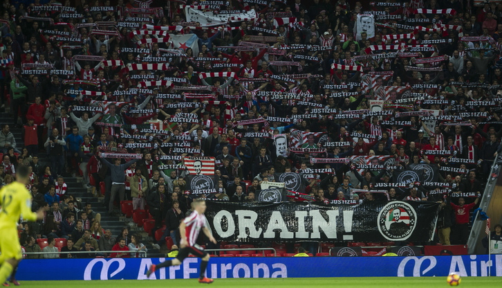 La Comisión Estatal contra la Violencia, el Racismo, la Xenofobia y la Intolerancia en el Deporte instó al Athletic Club en una comunicación del pasado mes de julio a prohibir la «exhibición de pancartas y banderas» de Herri Norte Taldea en San Mamés, además del uso de la megafonía al considerar que constituye «un acto de publicidad o difusión del grupo».