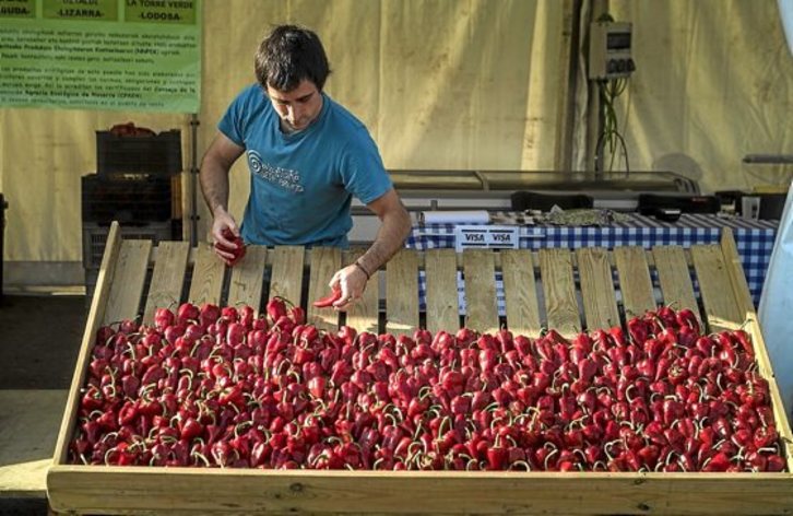 «Empezamos con un pequeño puesto de asado de pimientos en Berriogoiti –explica Asier Aranguren–. Pero ya es el tercer año que montamos otro punto de asado en Hernani, el segundo año que estamos en Galarreta. Están ahí trabajando dos personas». Ese pequeño puesto trata de convencer a los guipuzcoanos de que pelar los pimientos merece la pena. Y también, fomentar el consumo de productos de Euskal Herria y de cercanía, a poder ser, ecológicos y respetando un precio justo para los agricultores.