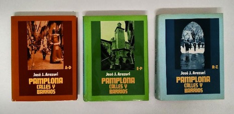 ‘Pamplona antaño’ fue una de sus obras más conocidas, a la que siguieron otras como ‘Pamplona estrena siglo’, ‘Pamplona belle époque’, ‘Viejas rúas pamplonesas’ y ‘Calles pamplonesas’. Pero sin duda la más importante de todas es ‘Pamplona. Calles y barrios’, compuesta por tres tomos que se editaron entre los años 1979 y 1980. Repasar sus escritos y sus 1.168 fotografías antiguas es hacer un viaje al pasado de Iruñea, a los personajes que dieron nombre a las calles y plazas, a las anécdotas más sonadas vividas en la ciudad a lo largo de muchos años.