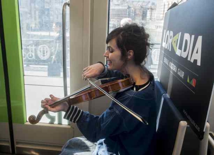 Bigarren kantu bat eskaini zuen Maite Larburuk. “Hezurren azpian” izango da bere hurrengo lana, eta Loraldian aurkeztuko du martxoaren 28an, Azkuna Zentroan. Gogoz txalotu zuten bidaiariek bere kantu bakoitza eta gehiagoren irrikan geratu ziren guztiak. San Mames ondotik, Casillaraino egin zuen bidea trenak, hiria alderik alde zeharkatuz. Euskal kulturak udaberrian urtero egiten duen lez. Zinema, literatura, bertsolaritza, musika, dantza, ikuskizun ugari martxo eta apirilean Bilbon. Nahi beste ekitaldi eta sorkuntza, hiri osoan.