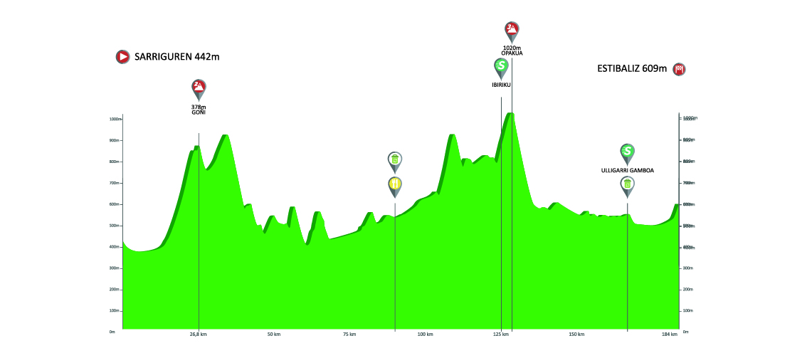 Bidean Goñi (2. mailakoa) eta Opakua (3. mailakoa) mendateak gainditu beharko dituzte txirrindulariek. Atzoko ibilbideak ezkutatzen zituen tranparik gabe, gaur egun lasaiagoa espero da, batez ere sailkapeneko gizonentzako. Ihesaldiren bat eta dauden esprinter apurren taldeen arteko lehia ikusteko aproposa.