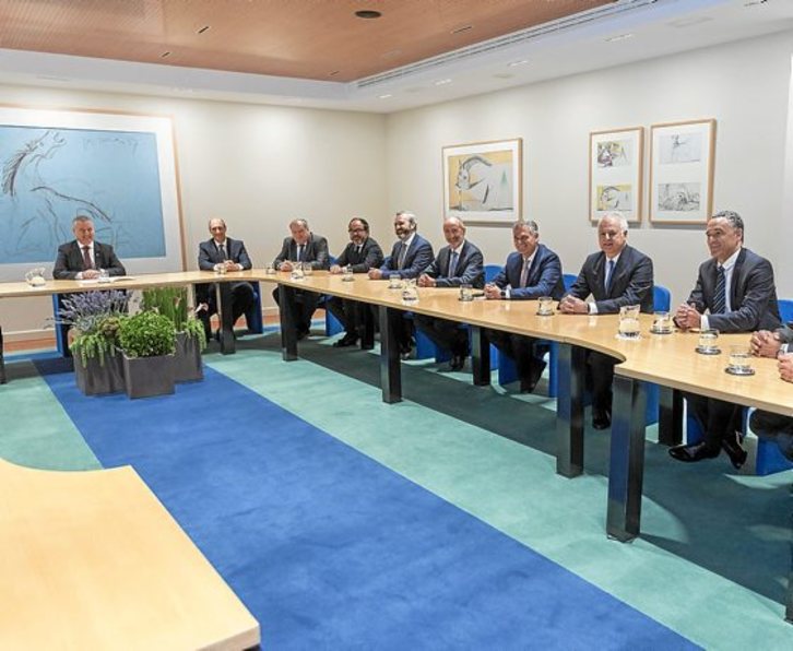 Iñigo Urkullu recibió ayer en la sede de Lehendakaritza a la dirección de Confebask, encabezada por su nuevo presidente, Eduardo Zubiaurre, que el pasado 18 de julio tomó oficialmente el relevo de Roberto Larrañaga, quien dejó el cargo tras cumplir los preceptivos cuatro años de mandato.