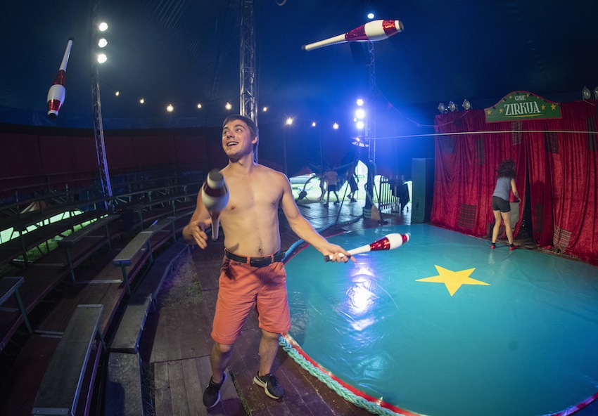 60 emanaldi bete ditu Gure Zirkuak, eta 70 gehiago eskainiko ditu hemendik abendura bitartean. Karpa koloretsua, zuzeneko musika, oihal gorriak eta danbor-errepikak testuinguru aparta dira arteaz oilo-ipurdiarekin gozatzeko.