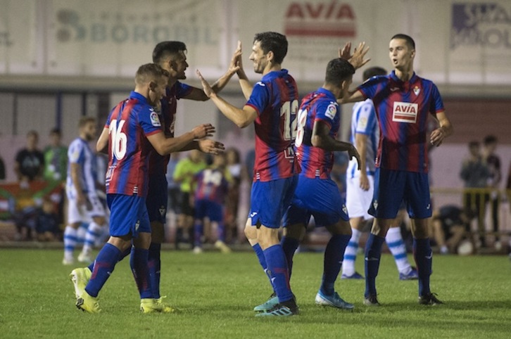 En el Eibar José Luis Mendilibar ha utilizado a Yoel; Tejero, Oliveira, Bigas (m.34, Calavera), Cubero; Orellana (m. 82, Ekhi Bravo), Sergio Álvarez, Escalante, De Blasis; Kike García y Sergi Enrich (m.72, Nano).