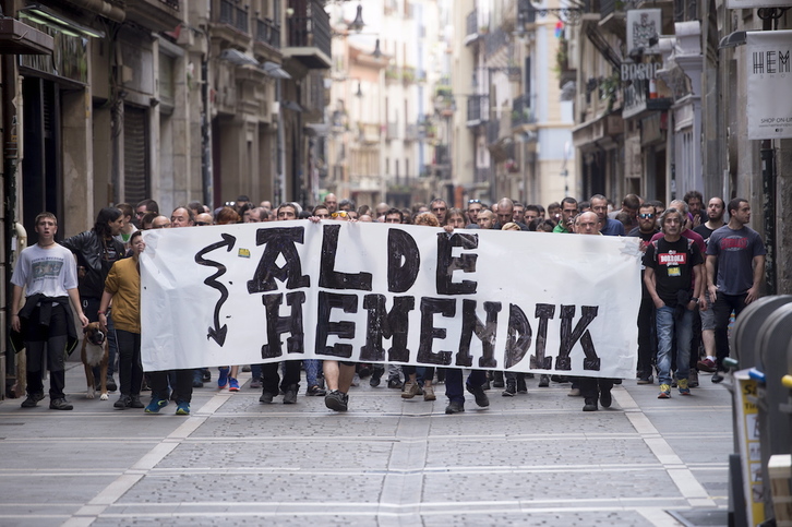 «Alde hemendik» lelopean manifestazioa egin dute Iruñean