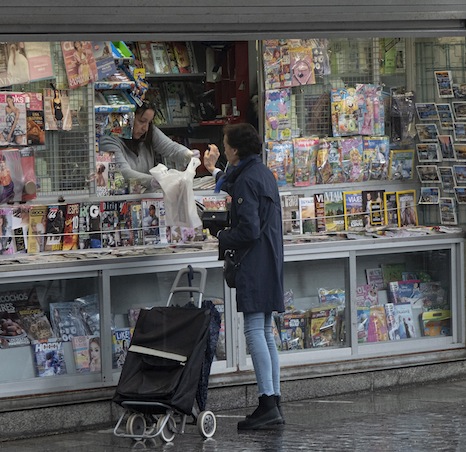 Como personas que están a pie de calle, los kiosqueros, en general, ven con preocupación la situación. Silvia Blanco regenta el kiosco de Gran Vía 1 de Bilbo, cerca de El Corte Inglés. Para ella, la situación derivada de la pandemia por el covid-19 es «para echarse a llorar en este negocio. Nos va de pena». Añade que «el lunes hubo un poco de movimiento, pero este martes nada. Nuestros clientes son del personal de El Corte Inglés, bares y comercios cercanos, pero están cerrados». Insiste que «es desastroso. Tenemos menos gente que cuando abría en domingo que en Bilbao está todo parado».