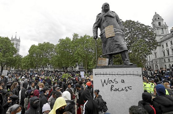 Protestak ez dira, ordea, aitzinako esklabista eta kolonizatzaileetan gelditu. Aurreko igandean, AEBetako enbaxadaren aurreko protestan, Londresen, Winston Churchill lehen ministro zenaren estatuaren oinarrian “arrazista zen” leloa idatzi zuten. Estatuaren inguruan “Beltzen bizitzak inporta du”, “Kolonialismo britainiarra da erantzulea”, “Eta Floyd zure semea balitz, zer?” moduko leloak idatzi zituzten. Sare sozialetan ikus daitekeenez, manifestari talde batek «Churchill arrazista!» oihukatu zuen, beste talde bat estatua babesten saiatu zen bitartean.