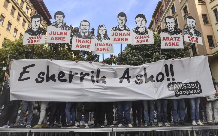 Desde entonces, los cinco tratan de recuperar su vida en las calles de su pueblo, con una pulsera anudada al tobillo, regresando a sus puestos de trabajo o volviendo a cursar unos estudios que quedaron en stand by tras la redada de noviembre de 2016. Y, sobre todo, convencidos de que si han podido volver a casa es gracias al movimiento que se articuló en la localidad, la socialización del caso y la solidaridad y movilización que provocó tanto en Euskal Herria como en muchos puntos del Estado.
