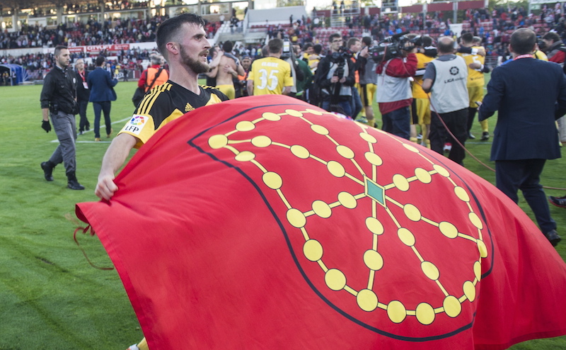 Bertako entrenamendu zelaietan kilometro asko eta asko eginak dituzte Lizarrako bi gaztek. Bata Oier Sanjurjo da, Osasunako kapitaina eta arima, eta euskaldun peto-petoa (Iñigo Urizen irudian, Nafarroako ikurrarekin, Gironan Lehen Mailarako igoera lortu eta minutu gutxira, 2016an).