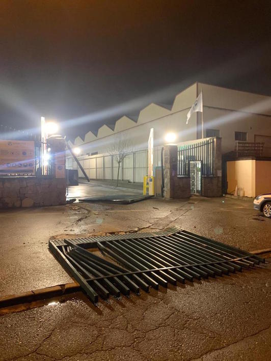Varias patrullas se han personado en el lugar y han detenido al conductor, acusado de un delito de daños. Los agentes han comprobado que además de los desperfectos causados a los vehículos, la puerta corredera de acceso a la planta había sido arrancada.