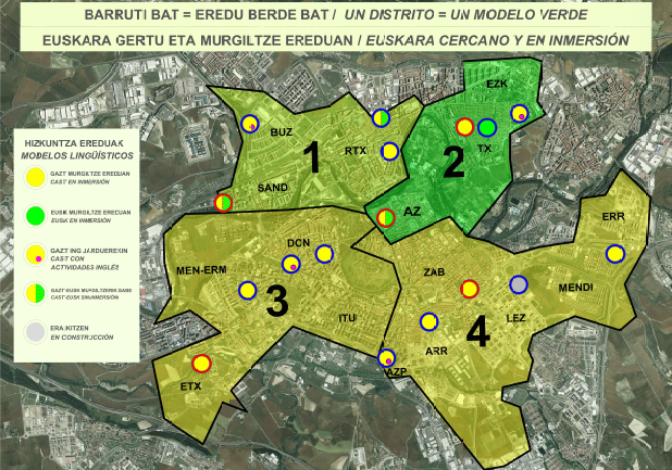 Modu honetan, behintzat, norberaren auzoan ez bada ondokoan euskarazko murgiltze eredua duen haur eskola publiko bat izatea defendatzen dute. «Proposamenak familiek eskatzen duten gertutasun printzipioa eta oreka geografikoa kontuan hartzen ditu. Horretaz gain, murgiltze eredua defendatzen du euskara ikasteko tresna pedagogiko bakarra bezala, eredu mistoan euskarak pairatzen duen disoluzioaren aurrean. Gaztelerazko murgiltze eredua existitzen den bezala, euskarazko murgiltze eredua exijitzen dugu».